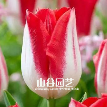 描述:郁金香“亲吻冲动",英文名Tulipa Kissable,胜利型郁金香,高约45cm,单瓣、白色带红色边,中花期。