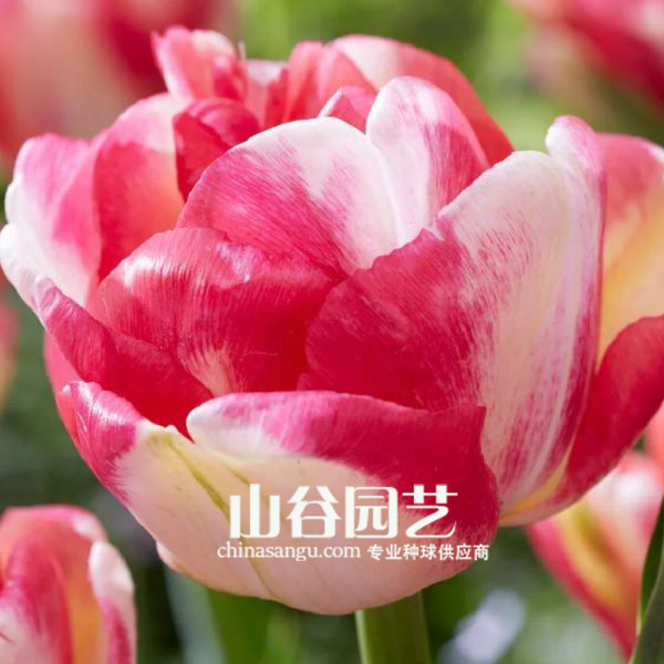 描述:郁金香“暴雪",英文名Tulipa Double Blizz,重瓣晚花型郁金香,高约45cm,重瓣、白色带红色边,中晚花期。